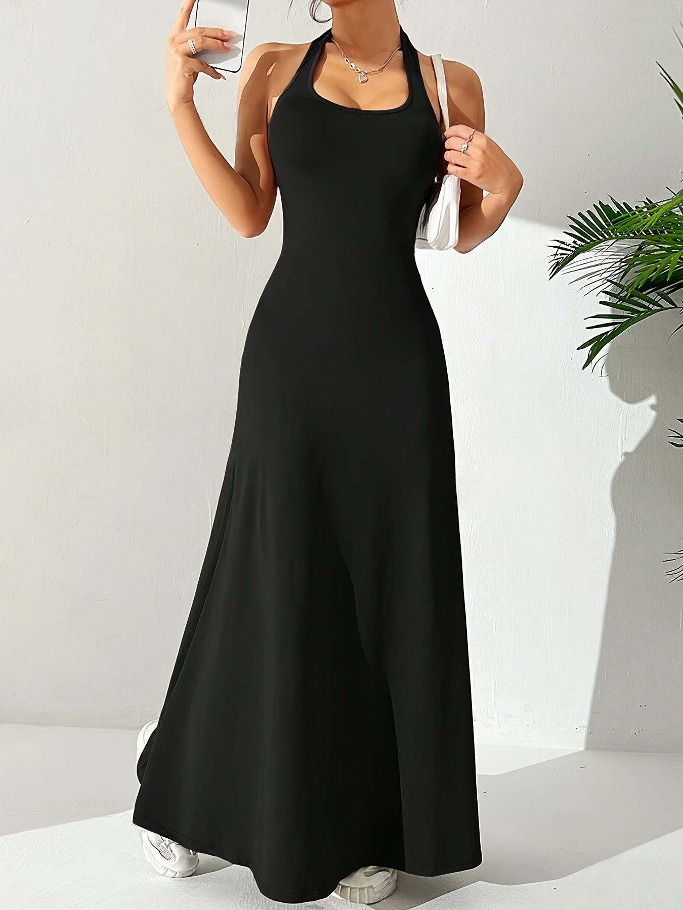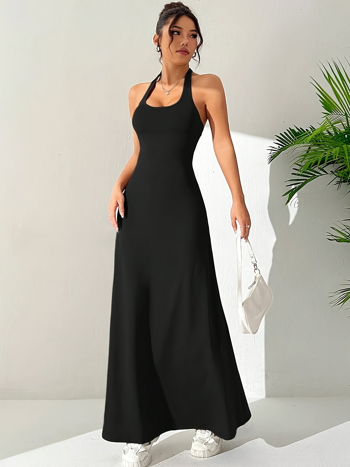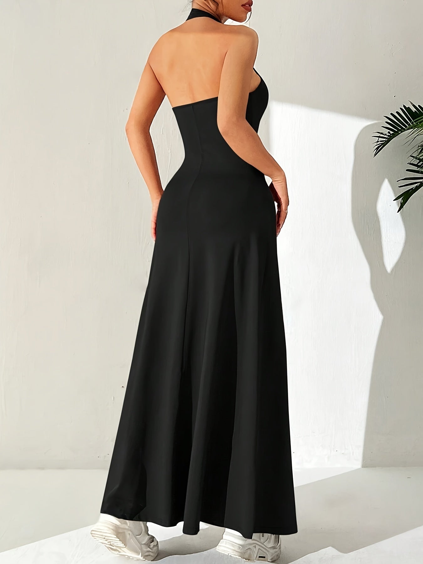 Laat je silhouet stralen in deze elegante halterjurk met open rug!