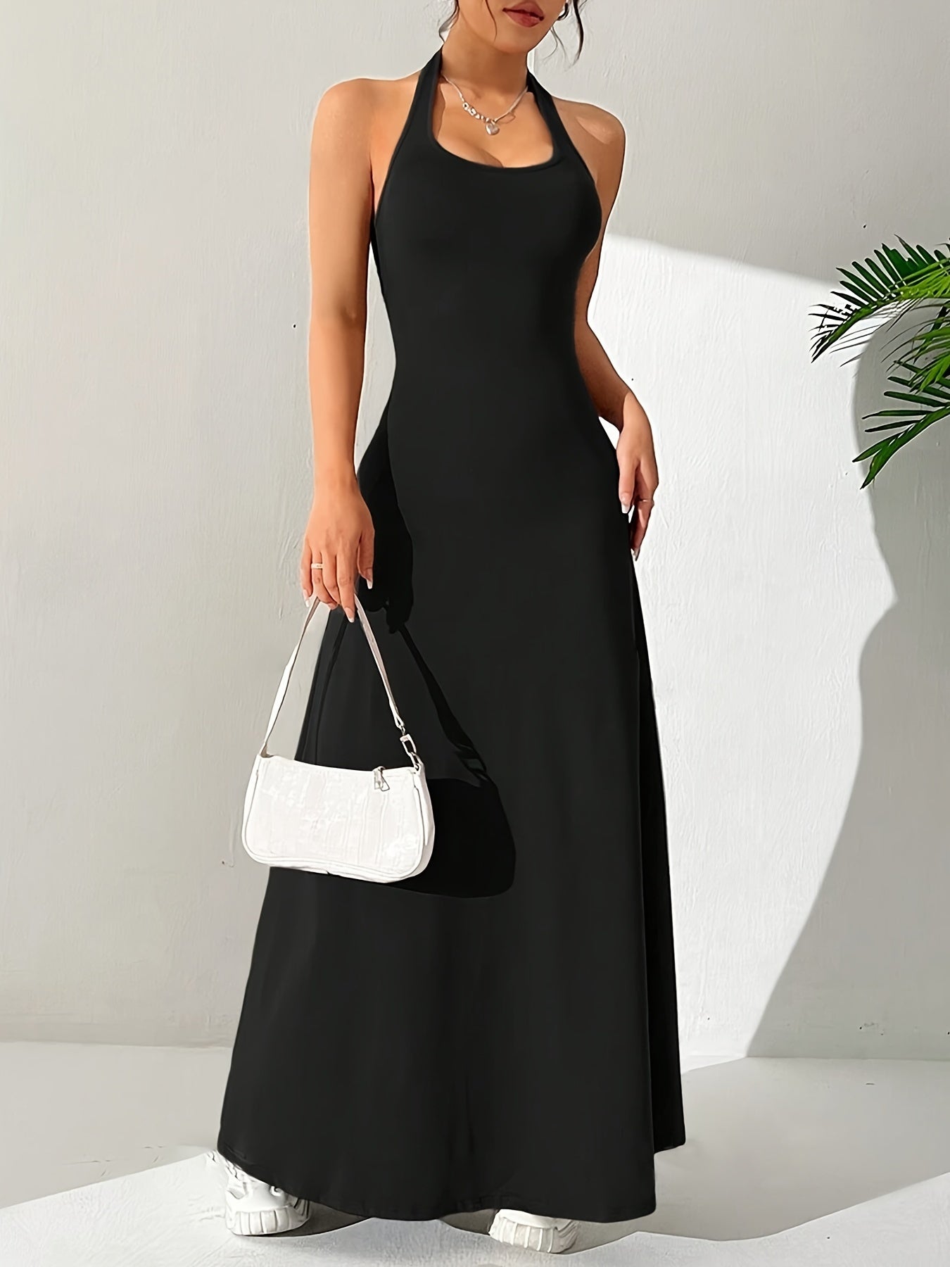 Mariel | Elegante Halter Maxi Jurk met Open Rug
