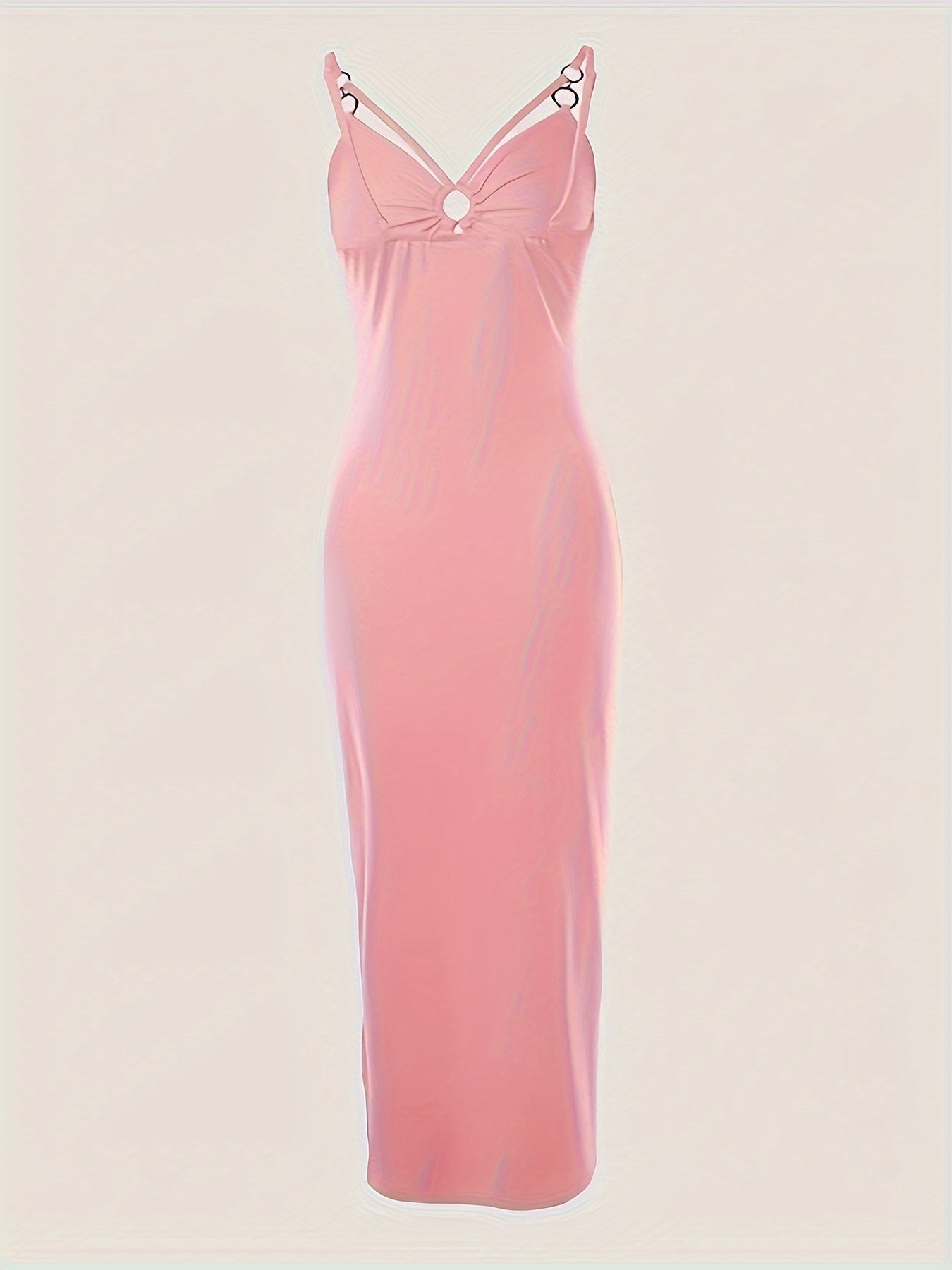Deze prachtige bodycon jurk met een gesplitste dij en uitgehouwen ontwerp biedt de perfecte combinatie van sensualiteit en stijl. De diepe V-hals en de gedetailleerde bandjes met metalen ringen creëren een verfijnde uitstraling, terwijl de gespleten zijkant zorgt voor een gedurfde en vrouwelijke flair. Of je nu naar een feest gaat of een chique diner hebt, deze jurk zorgt ervoor dat je in het middelpunt van de aandacht staat. Bestel vandaag nog jouw favoriete model bij Mowa-Mode!