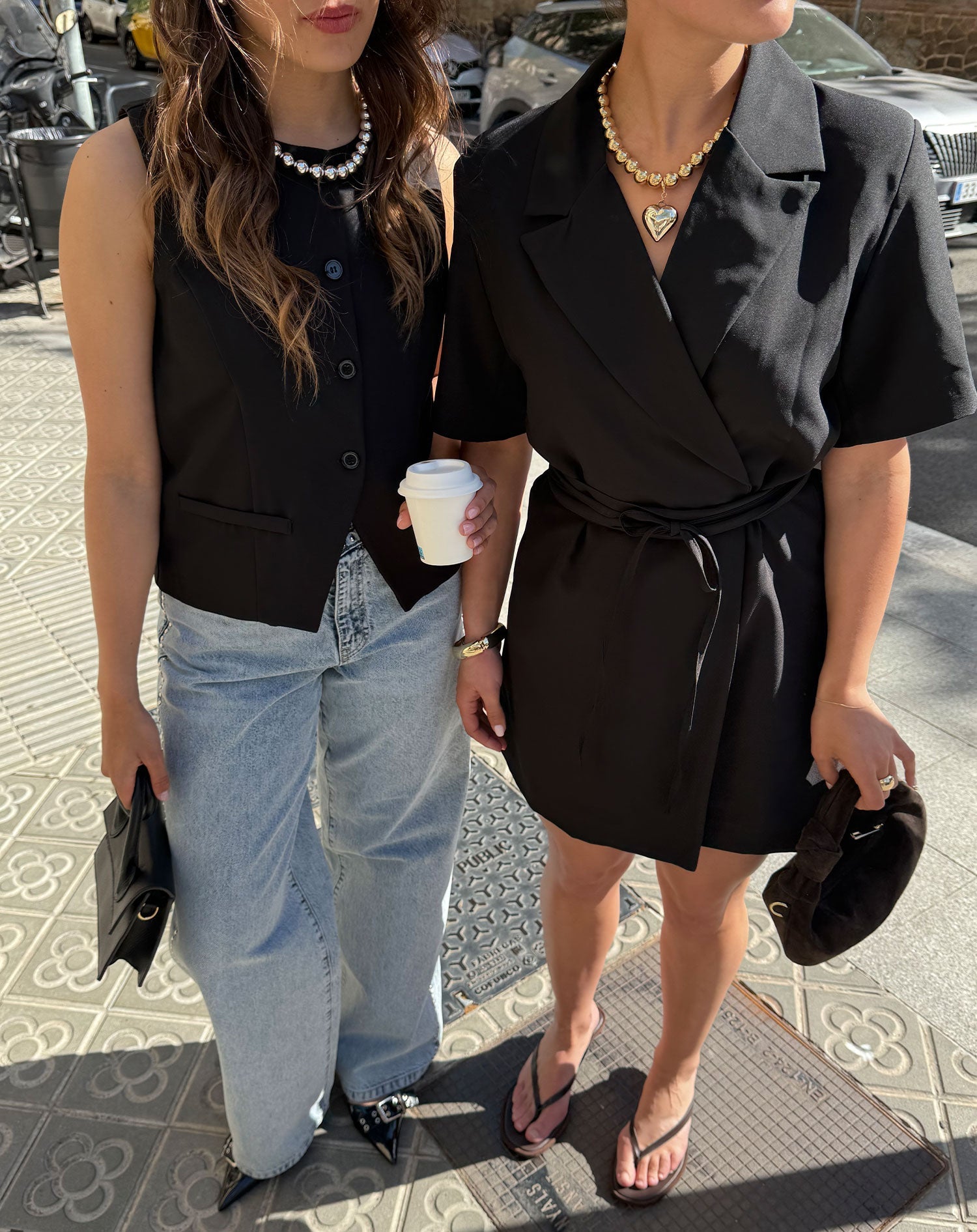 Het gilet is gemaakt van een mooie, wat dikkere stof. Het gilet heeft een knoopjessluiting en is gevoerd. Het gilet is getailleerd.
