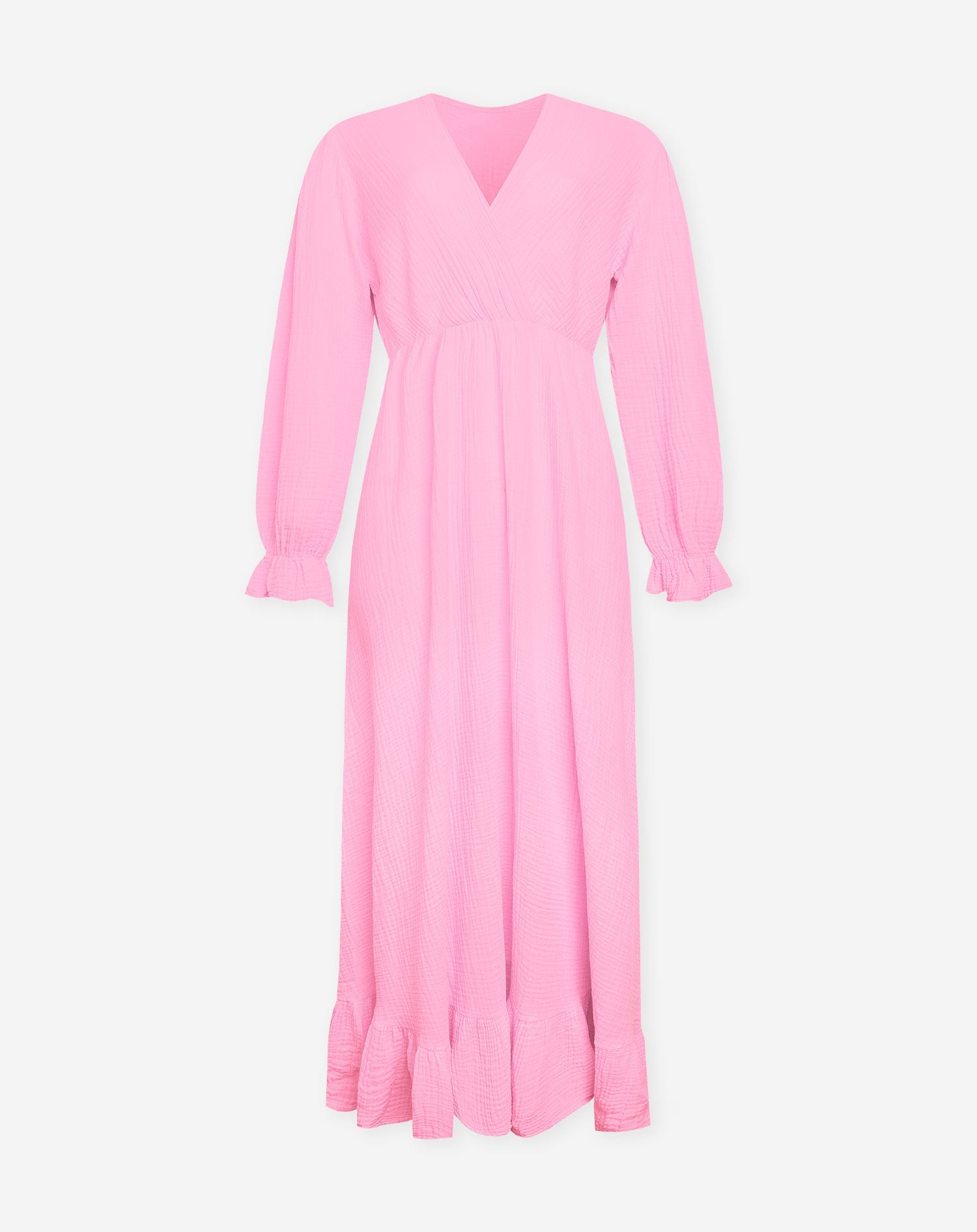 MOUSSELINE MAXI RUFFLE DRESS HARD ROZE