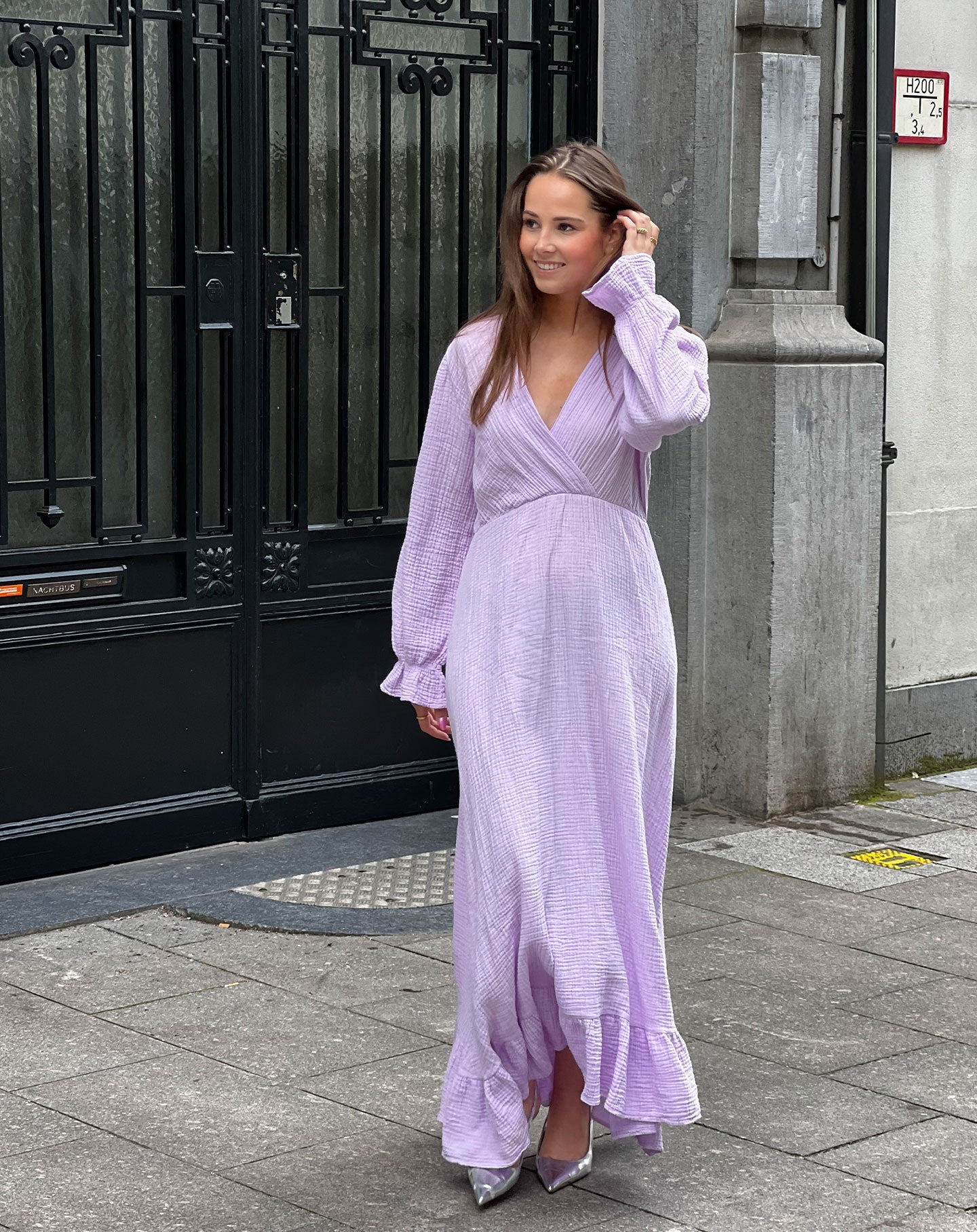 MOUSSELINE MAXI RUFFLE DRESS LILA