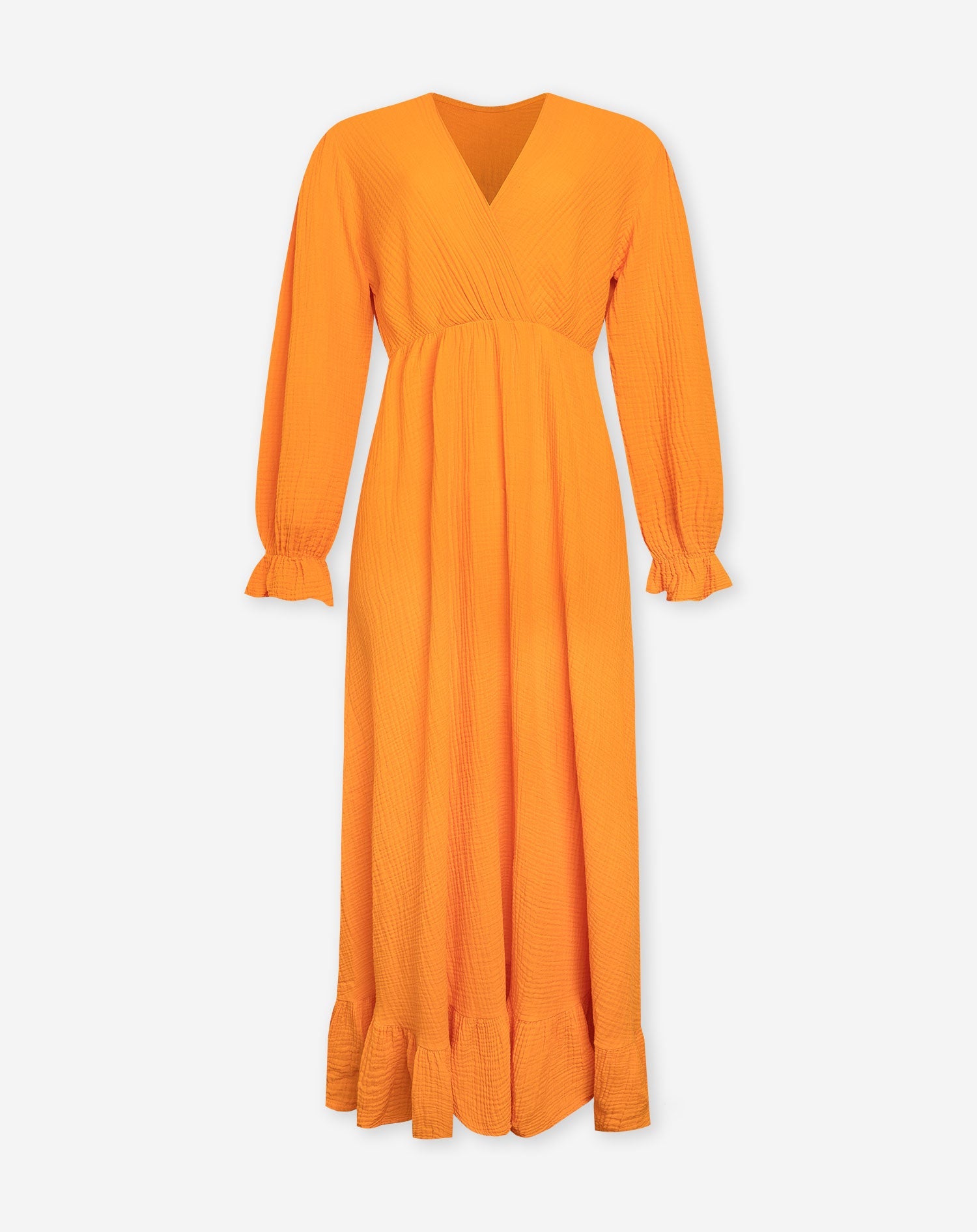 MOUSSELINE MAXI RUFFLE DRESS ORANJE