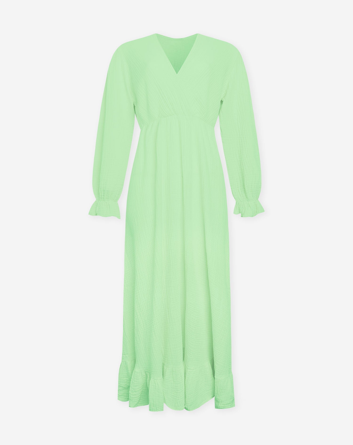 MOUSSELINE MAXI RUFFLE DRESS PISTACHE