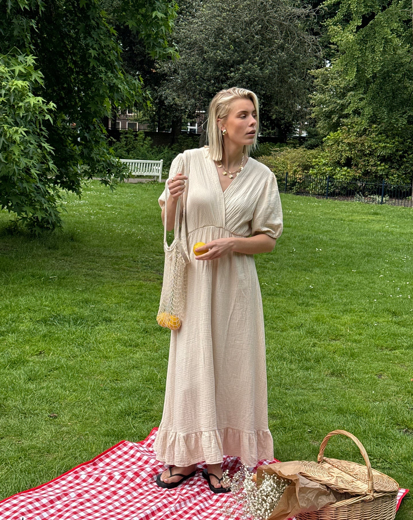 MOUSSELINE MAXI SHORT SLEEVE DRESS SAND