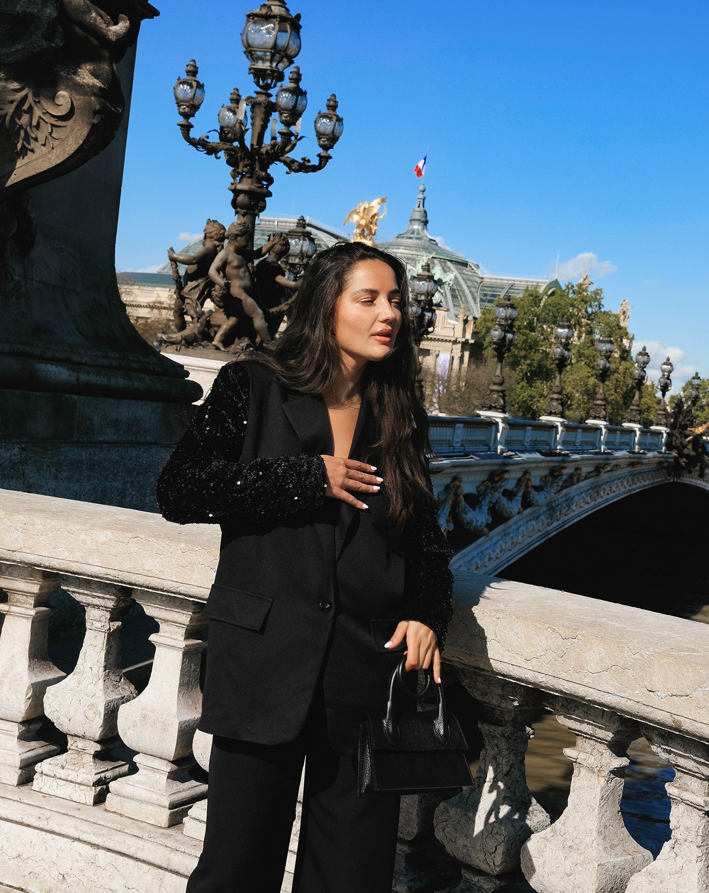 VELVET SEQUINS SLEEVE BLAZER ZWART