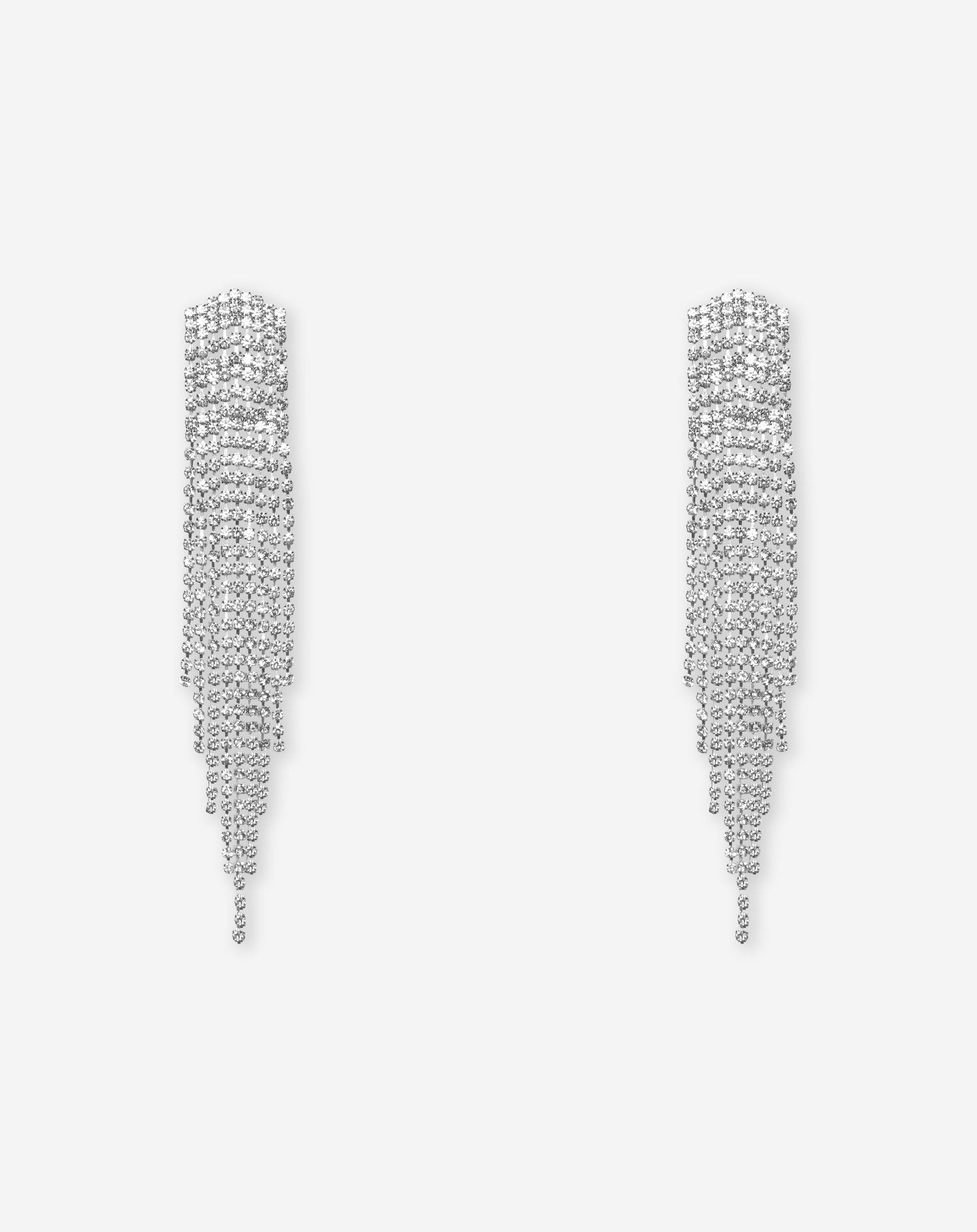 De oorbellen zijn zilverkleurig en zijn perfect voor het party seizoen. De oorbellen hebben meer-laagse hangers met kleine, zilveren diamantjes.