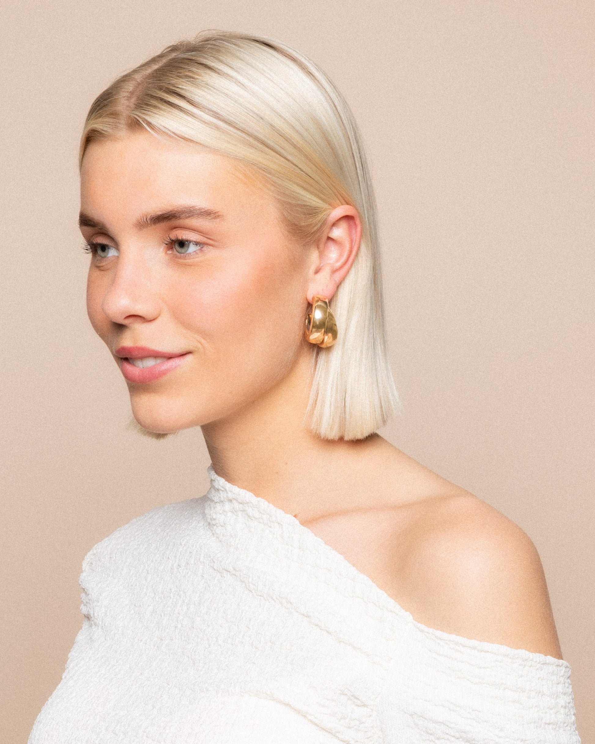 De oorbellen zijn goudkleurig en hebben een dubbele hoop shape. Combineer de oorbellen met jouw favoriete outfit & you're set.