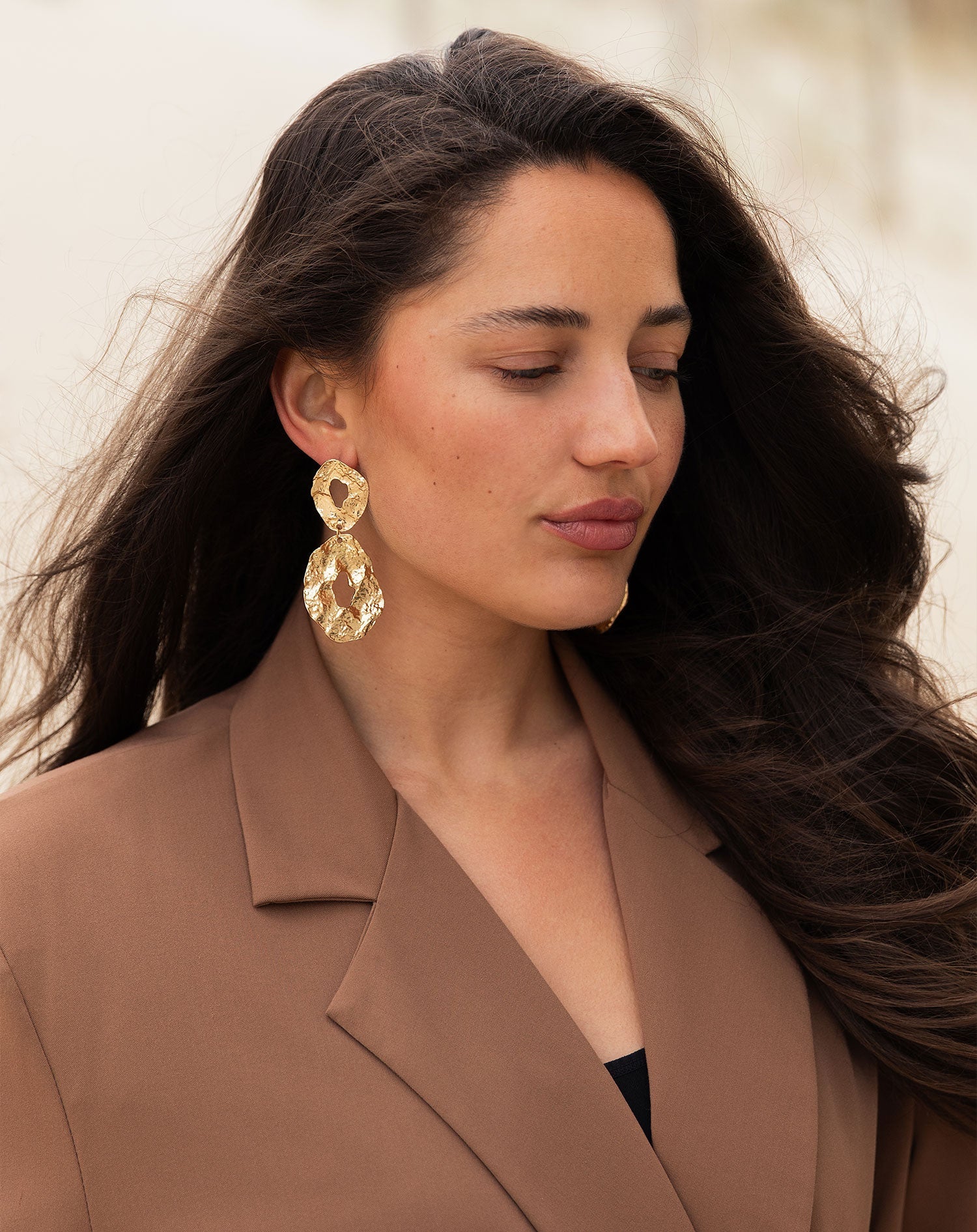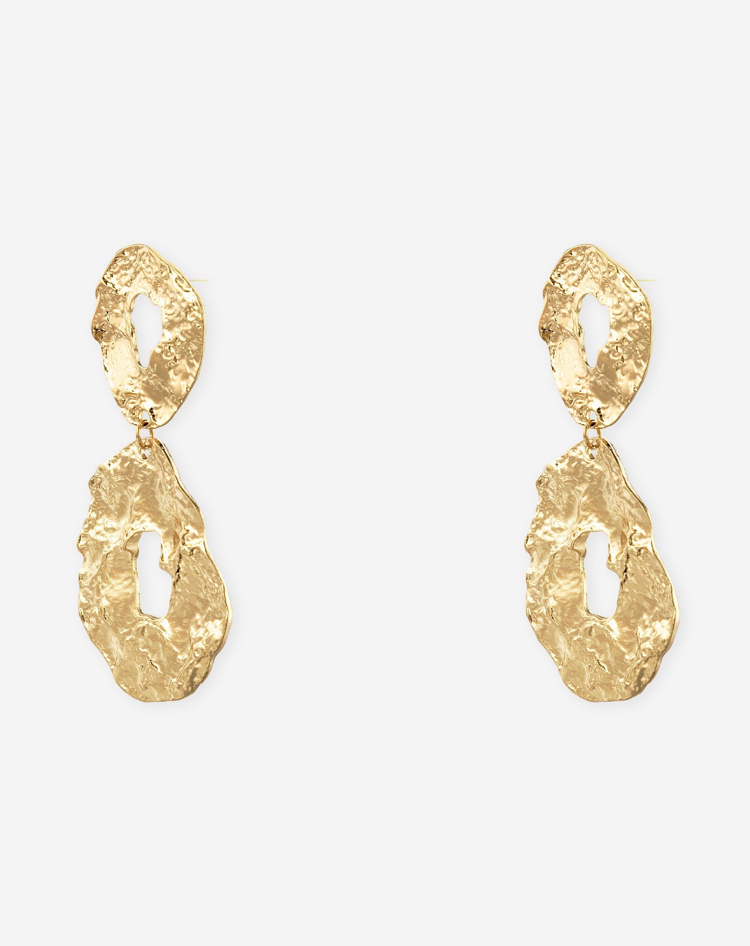 De oorbellen zijn goudkleurig en hebben een unieke vorm. Combineer de oorbellen met jouw favoriete outfit & you're all set.