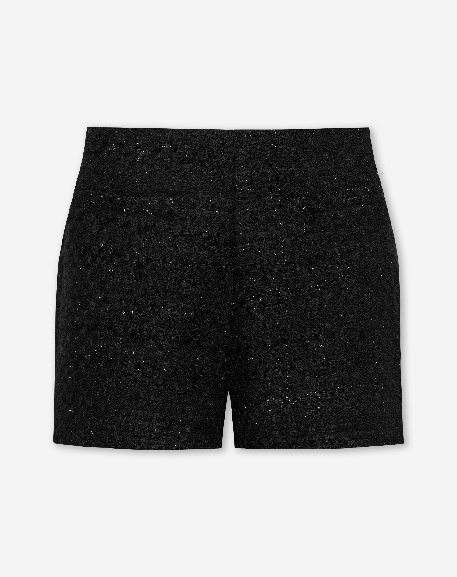 De short is gemaakt van een zwarte, boucle stof met lurex glitter er doorheen. De short heeft een ritssluiting. Combineer de short met de bijpassende Boucle Lurex Cropped Jacket voor een trendy look.