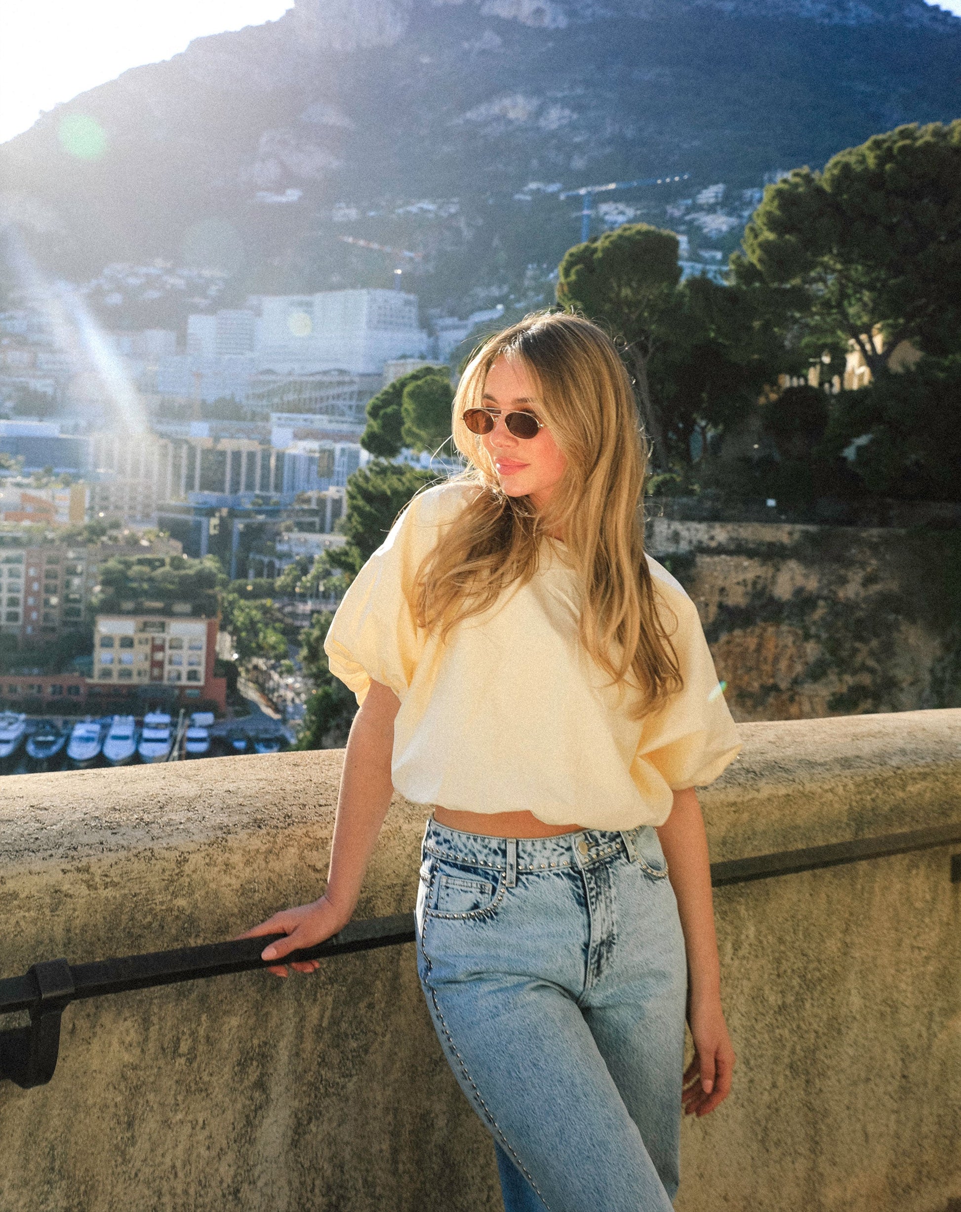 Deze top past perfect bij de upcoming butter yellow trend! π De top heeft pofmouwen en heeft een knoopsluiting aan de achterkant. De top is puffy aan de onderkant waardoor deze een cropped fit heeft.