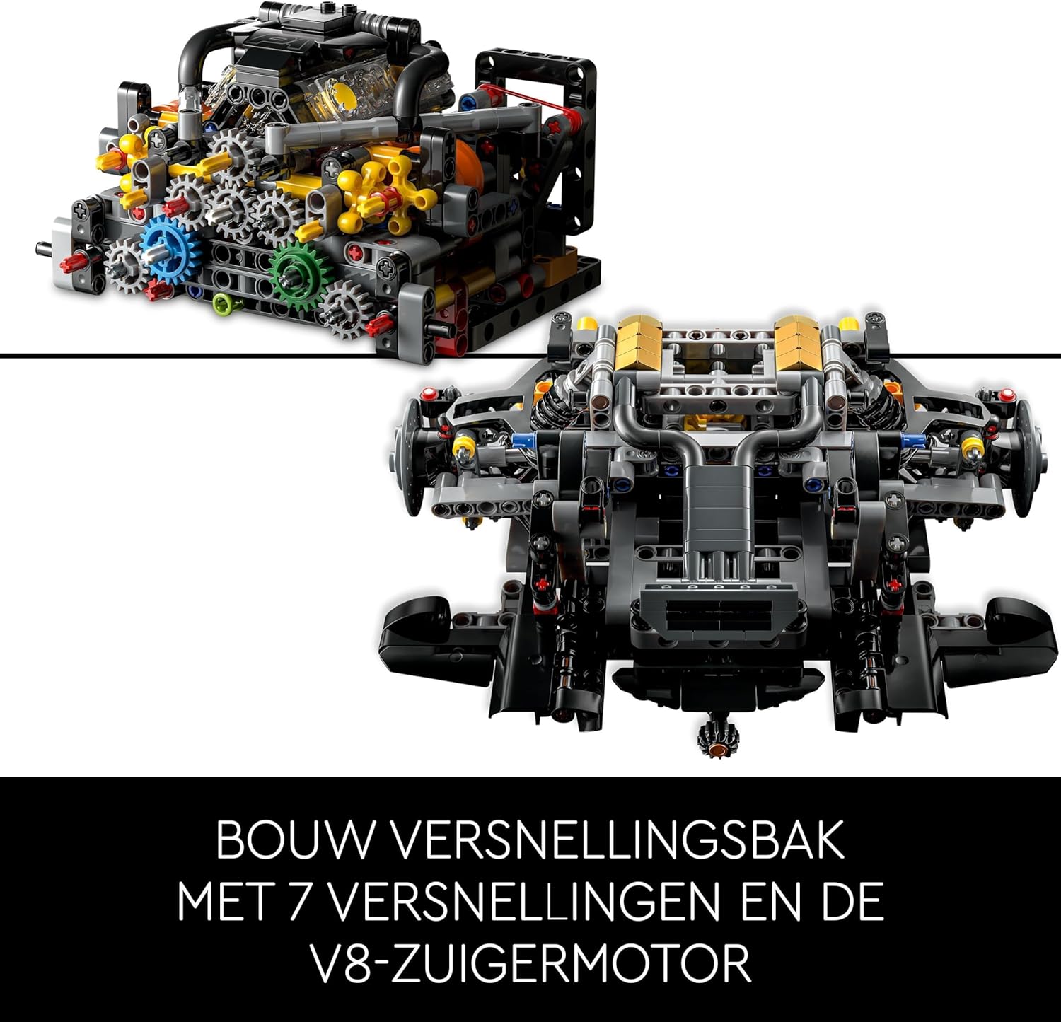 Bouw de 7-versnellingsbak en de V8-zuigermotor.
