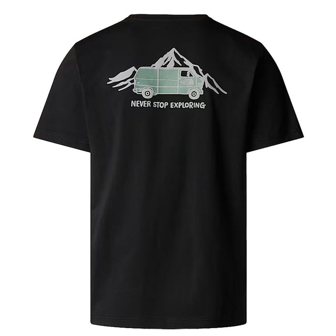 The North Face Mens Outdoor Graphic T Shirt Black Designed for urban adventures, our Outdoor Graphic T-Shirt is a classic style with short sleeves and a large 'Never Stop Exploring' graphic on the back. Pull it on before you get outside and explore more of the world.